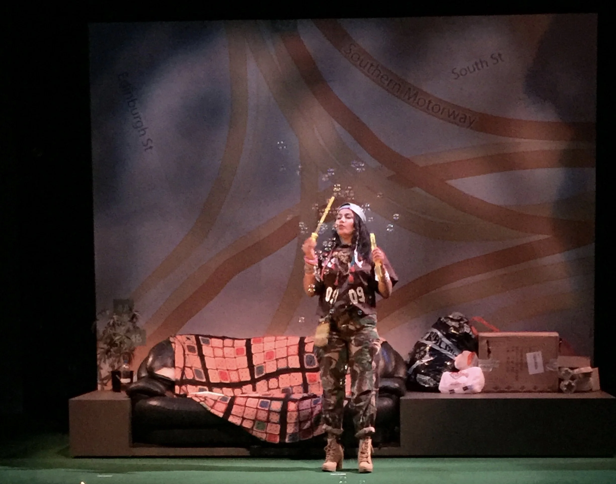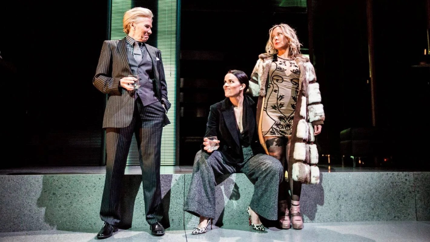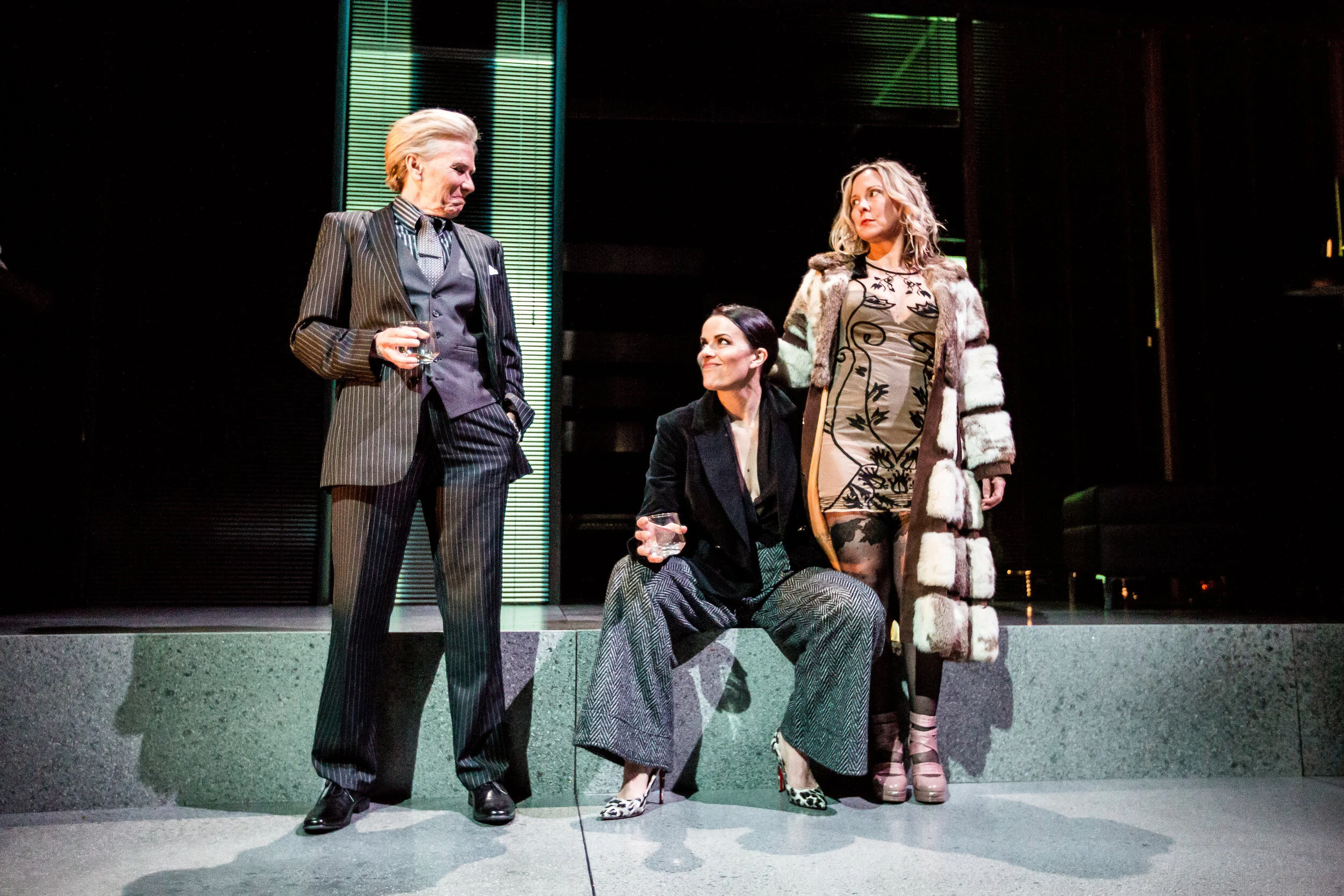“A hint of glamour comes from Lucy Jane Senior’s stylish costumes and Rachael Walker’s sophisticated set design, which features an elegant array of venetian blinds opening onto ominously flickering LED screens.