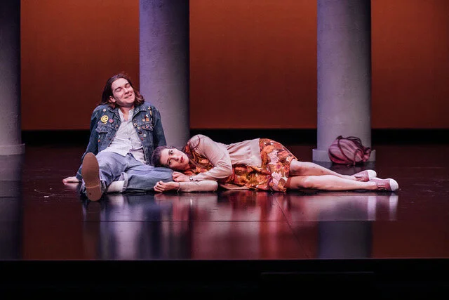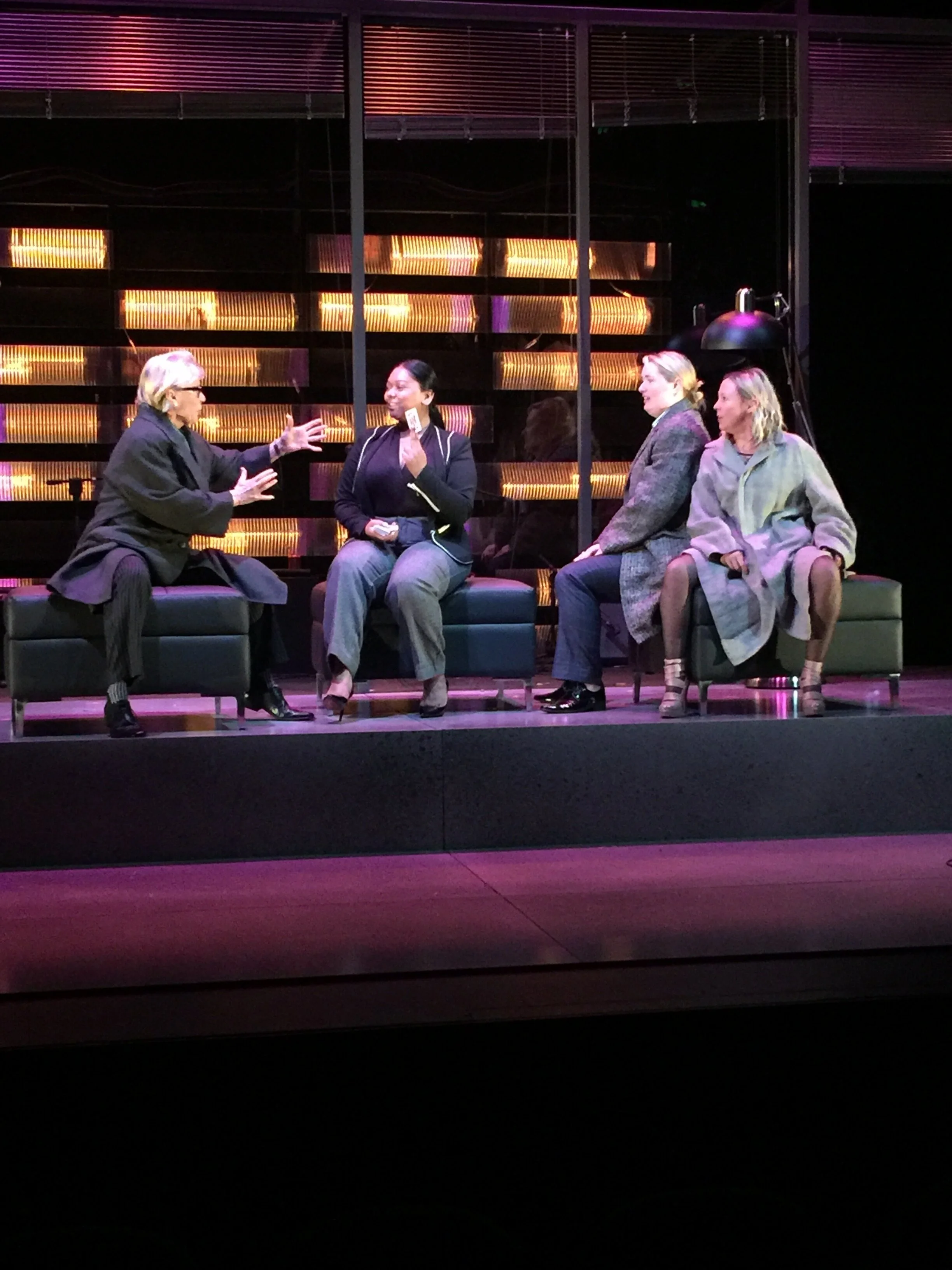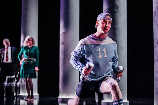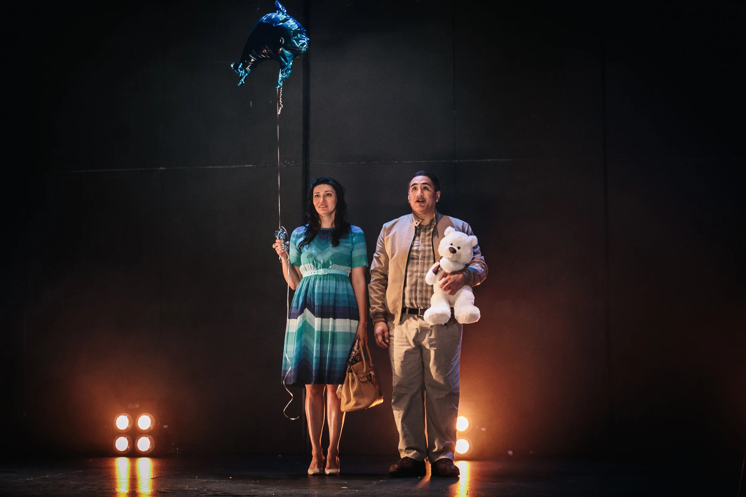 “A hint of glamour comes from Lucy Jane Senior’s stylish costumes and Rachael Walker’s sophisticated set design, which features an elegant array of venetian blinds opening onto ominously flickering LED screens.